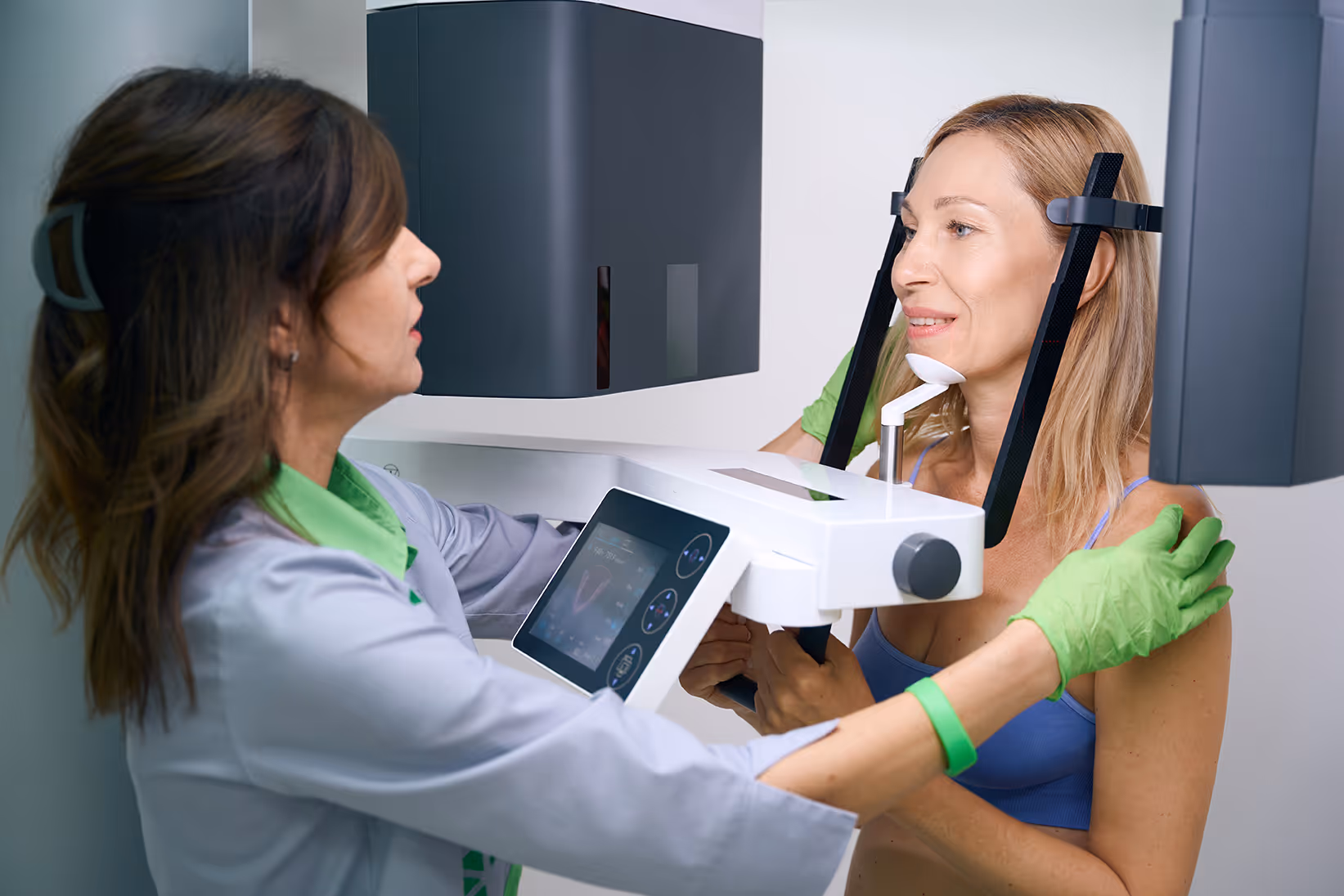 A CBCT scan is quick and completely non-invasive. You’ll remain seated upright while the scanner gently rotates around your head. There are no enclosed spaces, which helps eliminate the claustrophobic feeling often associated with traditional CT scans.